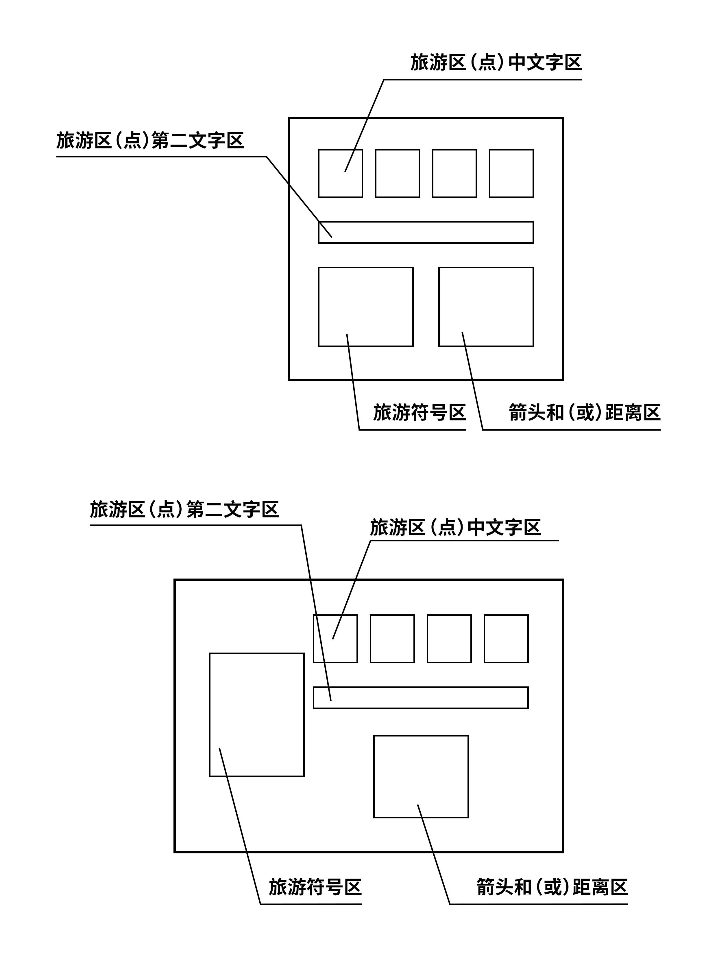 ●根据《道路交通标志和标线》GB 5768—2022)与《旅游交通标志设计指南》中的相关规定,旅游标志版式应采用标准化组合形式,如“字右图左”或“字上图下”模式。