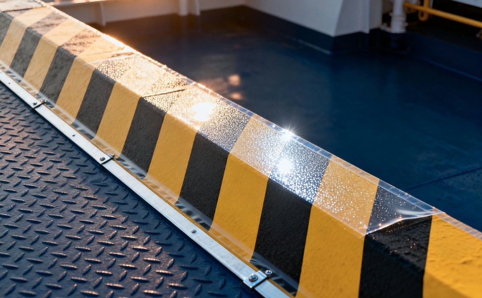 比如救生艇、海上救生设备等采用银灰色高亮海事反光胶带;甲板边缘则使用黄黑相间的防滑反光条纹。